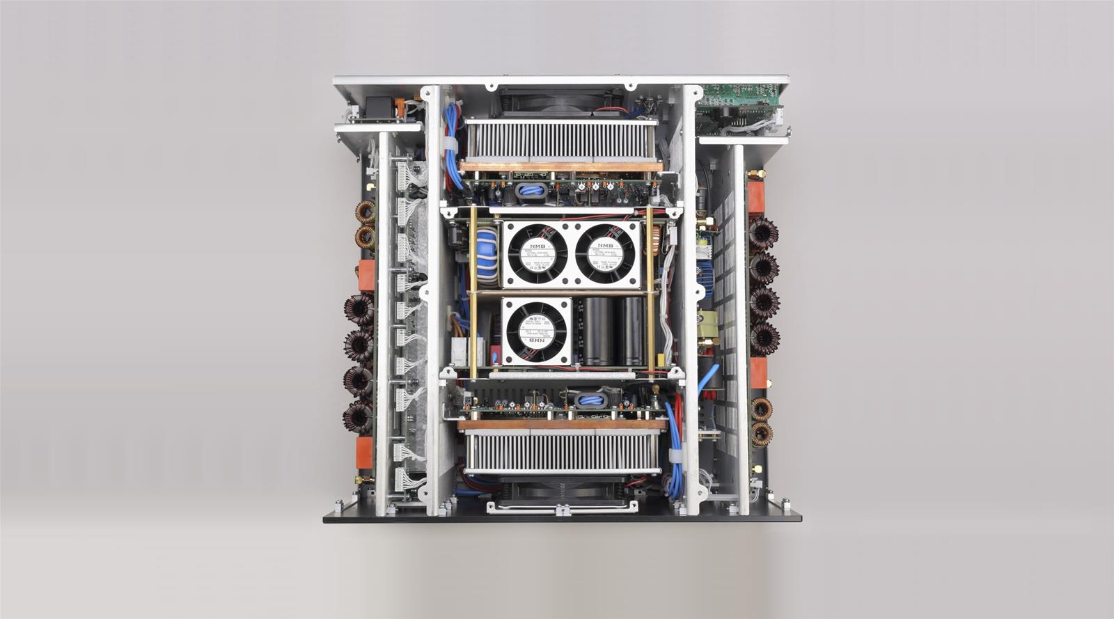 Compact and lightweight construction with a built-in switching-mode power supply that operates within a power mains voltage range of 200-240 VAC, ±10% (180-264 VAC limiting values), with no internal switchover. The consumed current is purely sinusoidal, power factor corrected and in-rush current limited, which makes the operation of this amplifier from unstable AC mains and generators easy and trouble-free. This amplifier complies with the CE electromagnetic compatibility (EMC) requirements and FCC regulations and is compatible with both highly sensitive and other devices such as receivers, computers, and other amplifiers due to built-in radio-frequency filters and Power Factor Corrections.